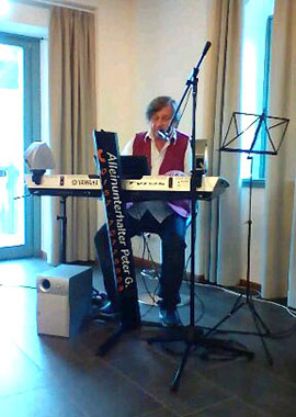 Ich biete Ihnen als erfahrener Alleinunterhalter ( Keyboard,Akkordeon,Trompete Alphorn, Gesang ), Entertainer und DJ zu jedem Anlass die richtige Musik.Vom Volkslied , Schlager bis hin zu aktuellen deutschen Partyhits. Dezente Musik während des Essens , danach Stimmung-und Tanzmusik. | ||||||||||||||||||||||||||||||||||||||||||||||||||||||||||||||||||||||||